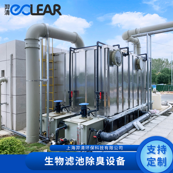 生物除臭设备采用的是生物滤池工艺,生物滤池除臭工艺是采用生物法去除臭气的一种方法。生物法与传统的物化处理方法相比,具有可避免或者减少二次污染、投资少、能耗低、运行费用低、装置简单。脱臭效率等优点,其除臭效率大于90%.     生物滤池除臭的工艺原理是利用微生物的生物降解作用对臭气物质进行吸收和降解从而达到除臭的目的。臭气通过湿润、多孔和充满活性微生物的滤层。利用微生物细胞对恶臭物质的吸附、吸收和降解功能,微生物的细胞个体小、表面积大、吸附性强、代谢类型多样的特点,将恶臭物质吸附后分解成CO?、H?O、H?SO?、HNO?等简单无机物。生物滤池法除臭效率高,适合大气量低浓度的废气处理。 除臭是一项系统工程,其中高效合理的密封系统收集系统是保证处理效果的基础,臭气密封系统是由构筑物密封罩,收集风管组成,负责将产生的恶臭物质进行收集并输送至处理系统。密封罩常采用的有机玻璃、玻璃钢、阳光板、PC耐力板、氟碳纤膜等材料。收集风管常采用有机玻璃或玻璃钢材质,管路的横截面为矩形或圆形,根据实用《供热空调设计手册)及实际估算处理量选定管